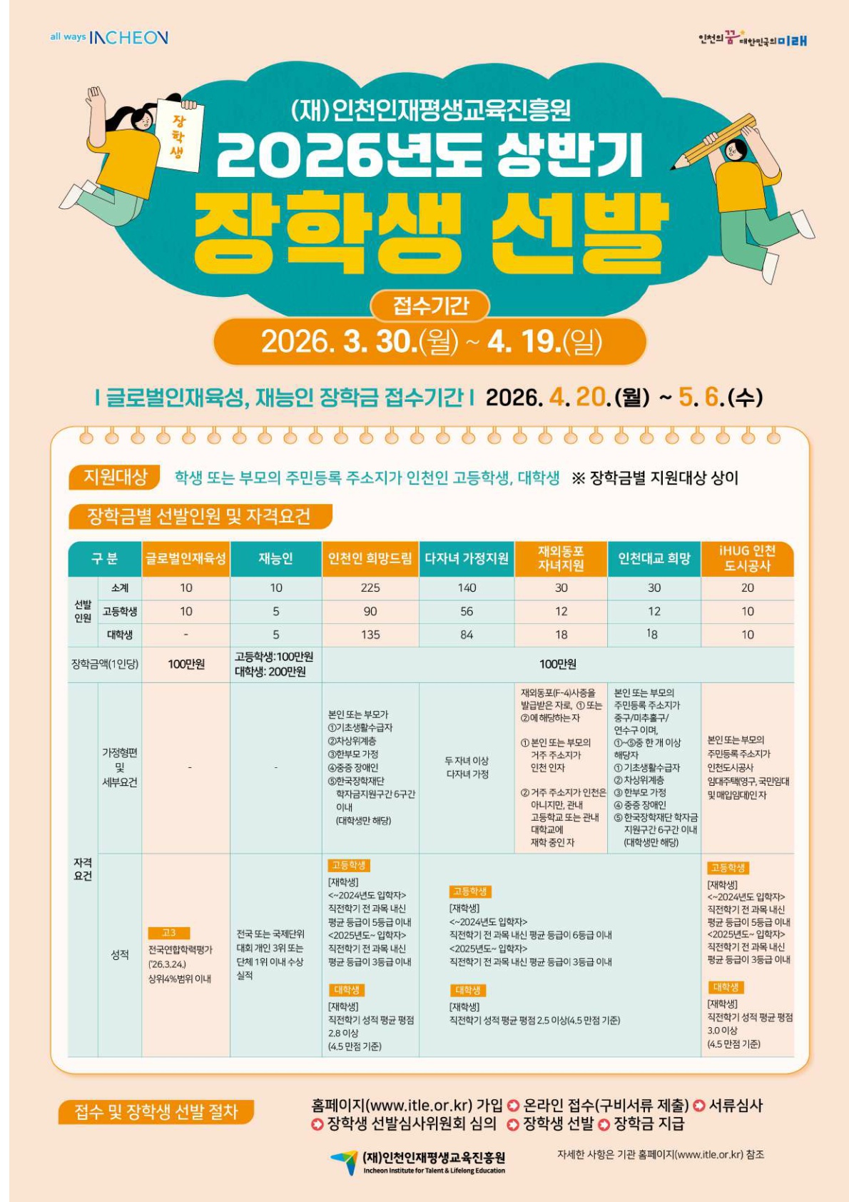 □ 2026년도 (재)인천인재평생교육진흥원 상반기 장학생 선발