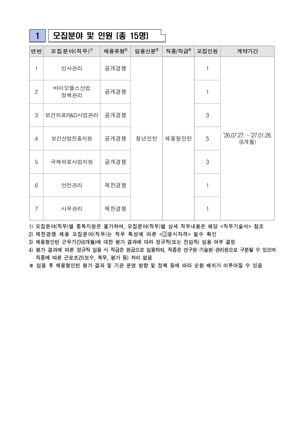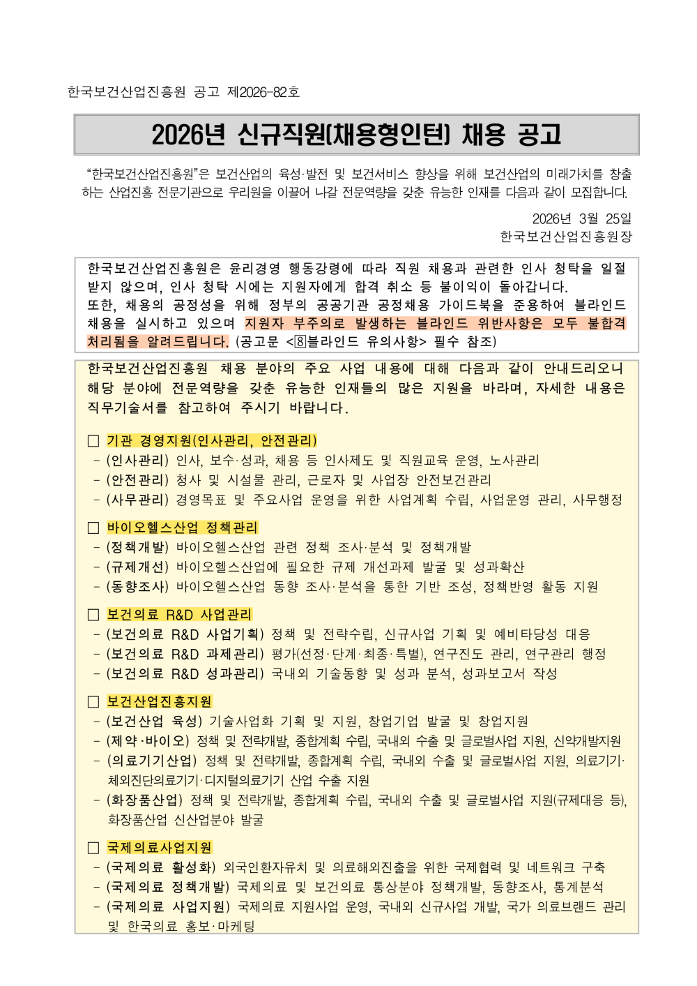 [한국보건산업진흥원] 2026년 신규직원(채용형인턴)채용 공고(~4/8)