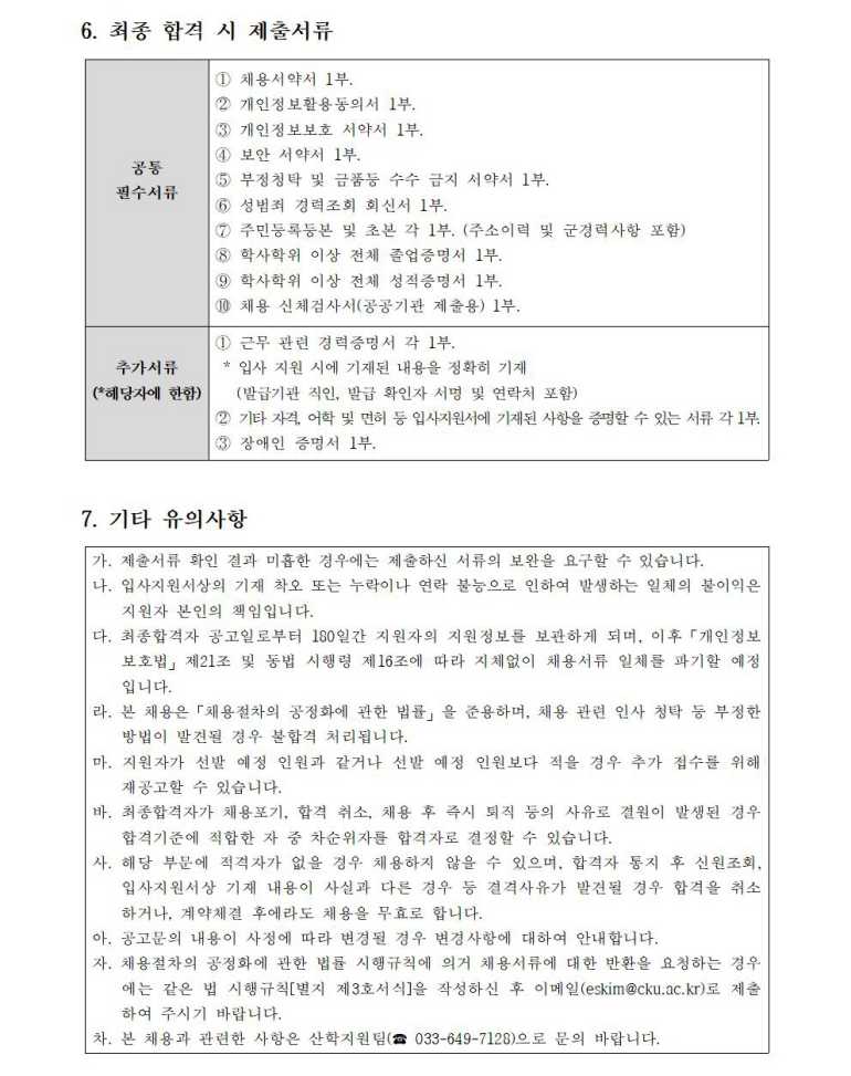 가톨릭관동대학교 계약직원 채용 공고(2026. 4. 21. 임용 예정)