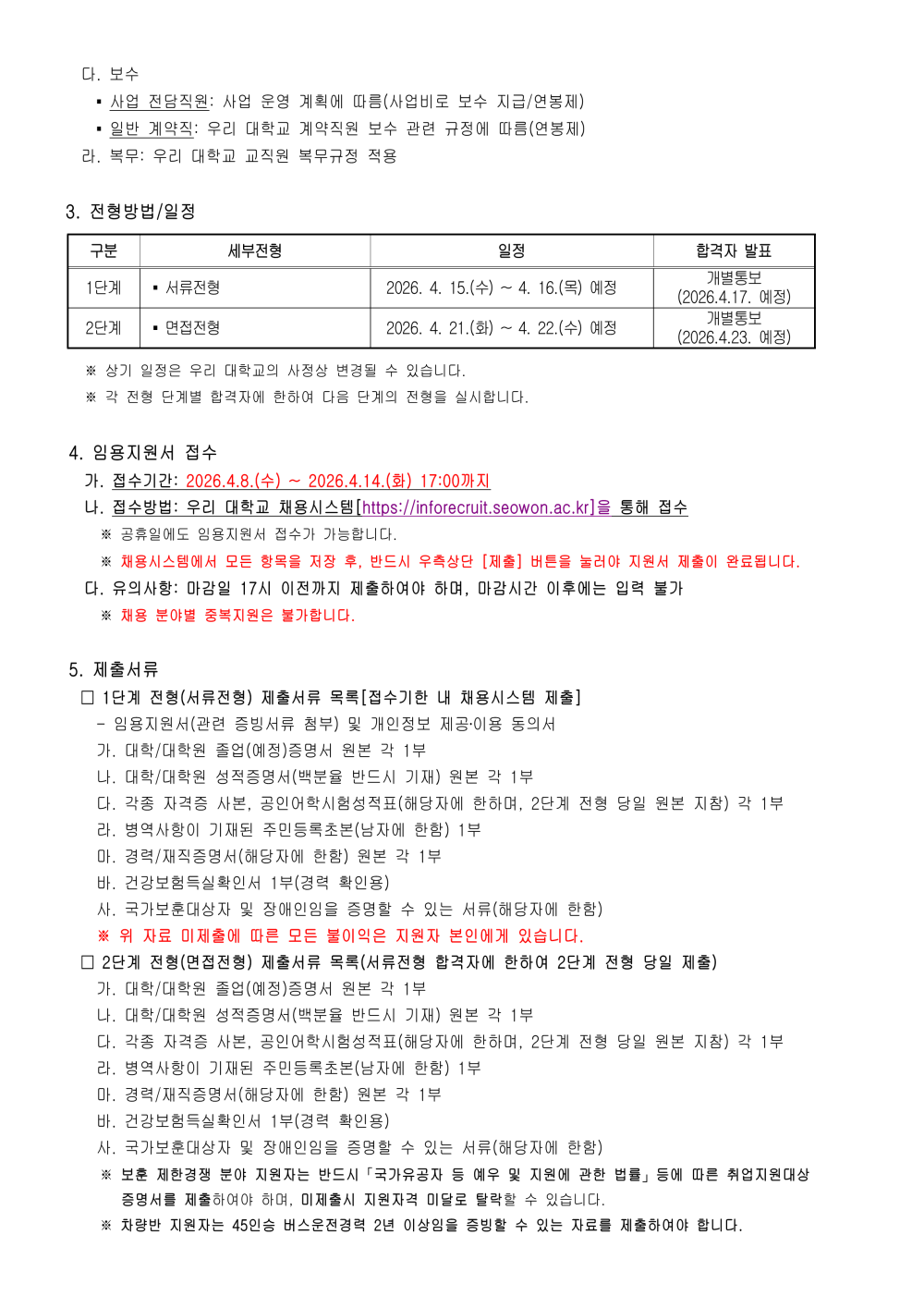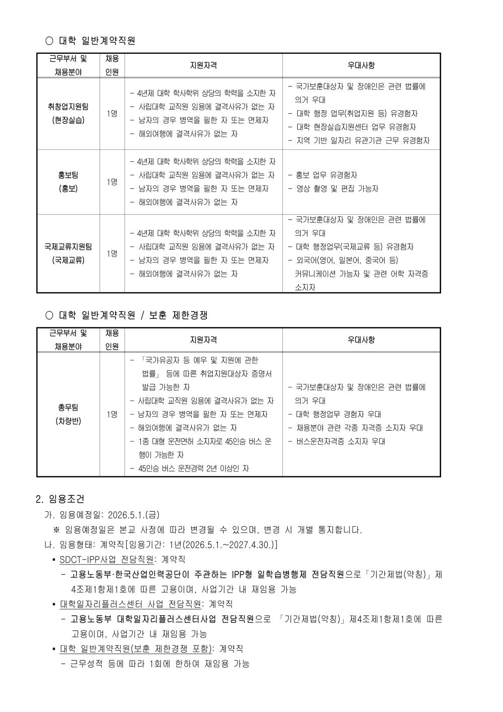 가톨릭관동대학교 계약직원 채용 공고(2026. 4. 21. 임용 예정)