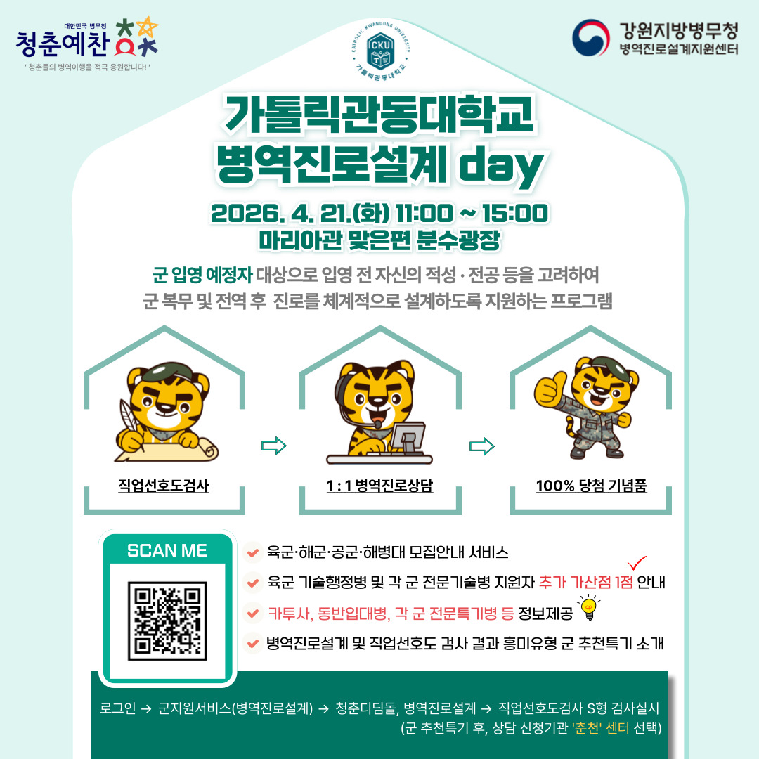 가톨릭관동대학교 대학일자리플러스센터는 강원지방병무청과 함께