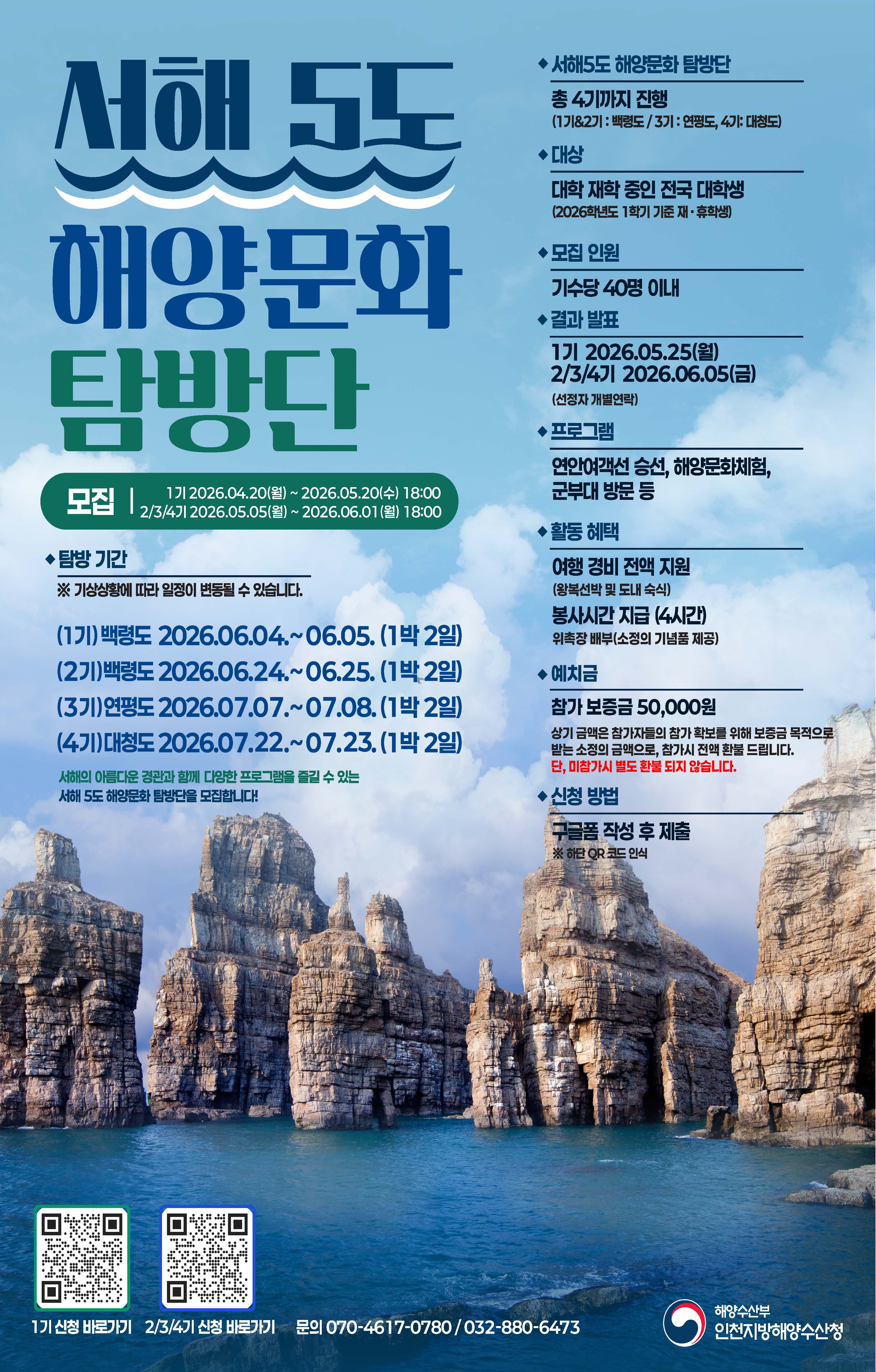 [인천지방해양수산청] 서해5도 해양문화 탐방프로그램 참가자 모집 안내