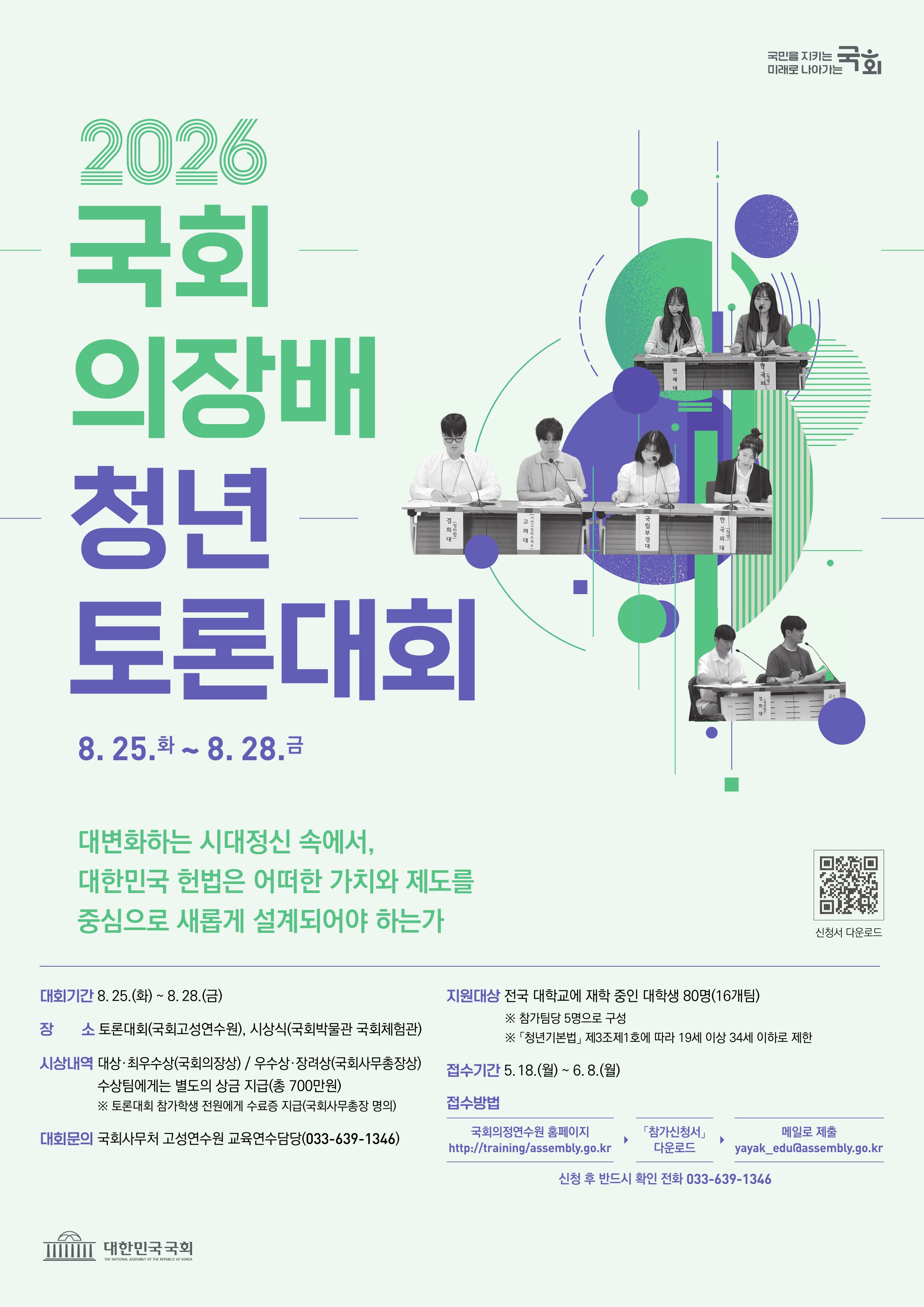 [교육부] '2026년도 국회의장배 청년 토론대회' 참가 신청 안내