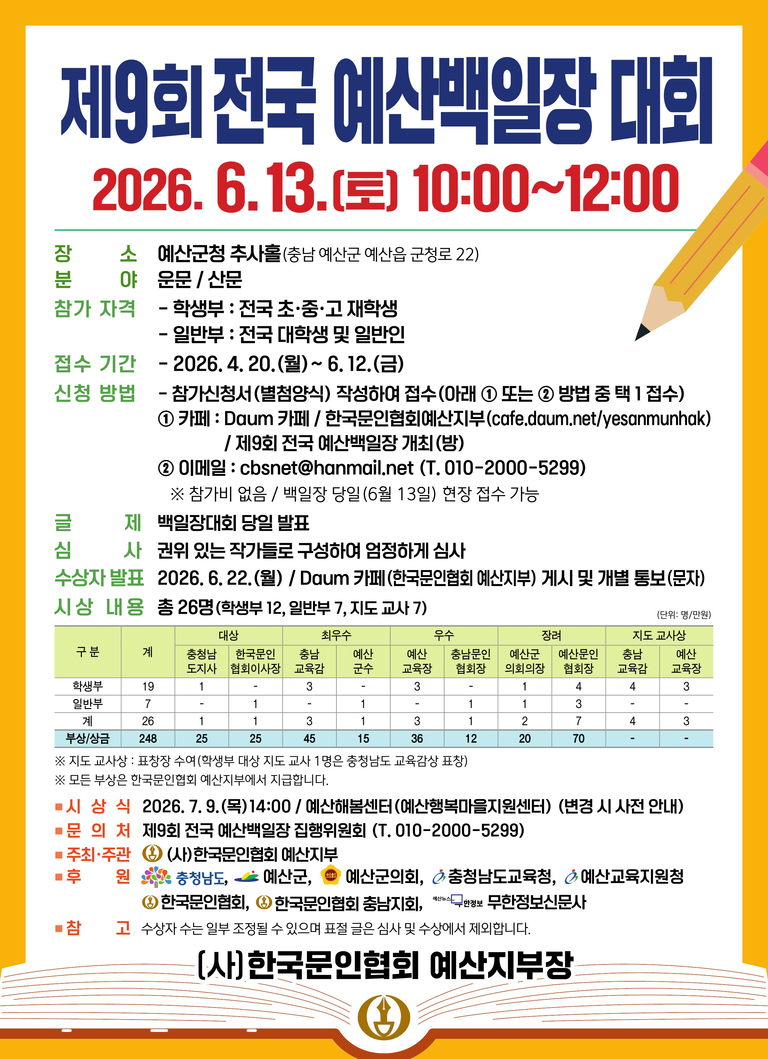 [예산군] 「2026년 제9회 전국예산백일장대회」개최 안내