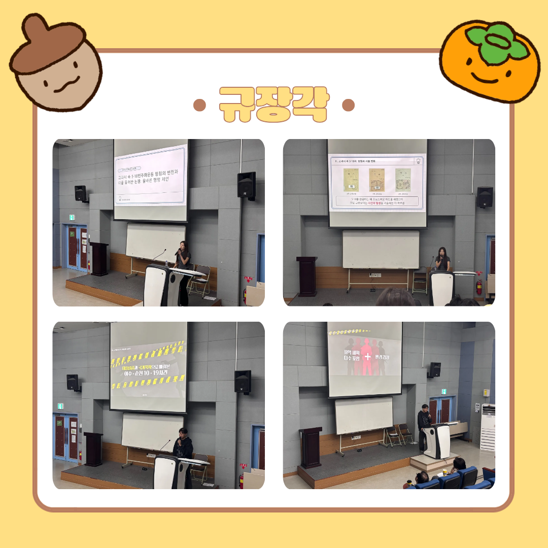 규장각 세미나 발표는 23설*빈, 24경*영, 25이*철 학우 분들이 참여해주셨으며 답사의 대한 이해도를 높여주고 흥미롭게 즐길 수 있도록 도와주셨습니다!