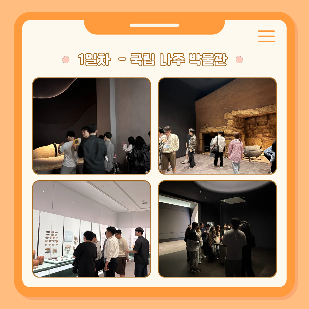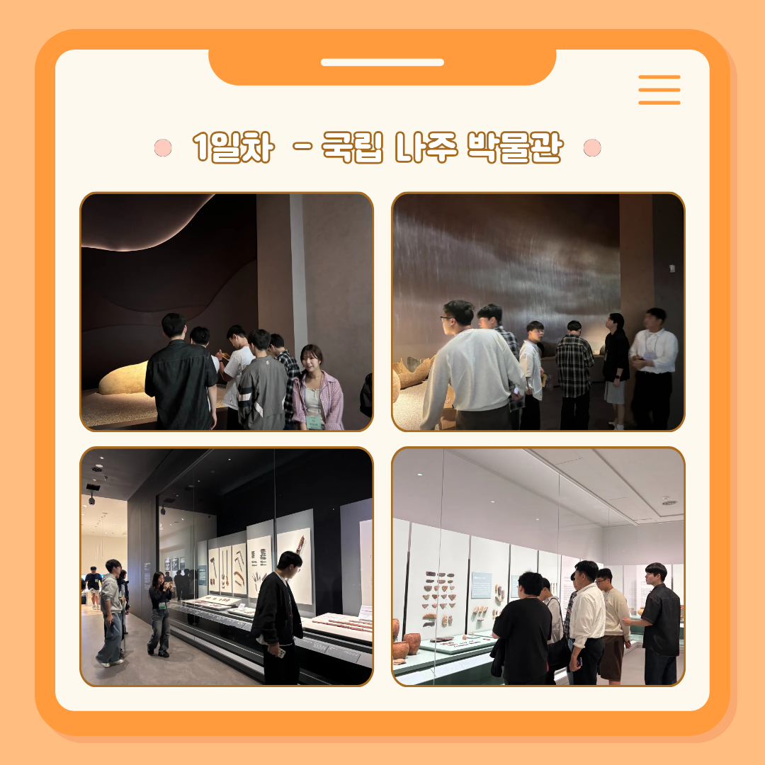 또한 국립 나주 박물관과 나주 덕산리 고분군을 찾아 교수님들의 설명과 함께 학술적인 지식을 쌓는 뜻깊은 시간을 보냈습니다!