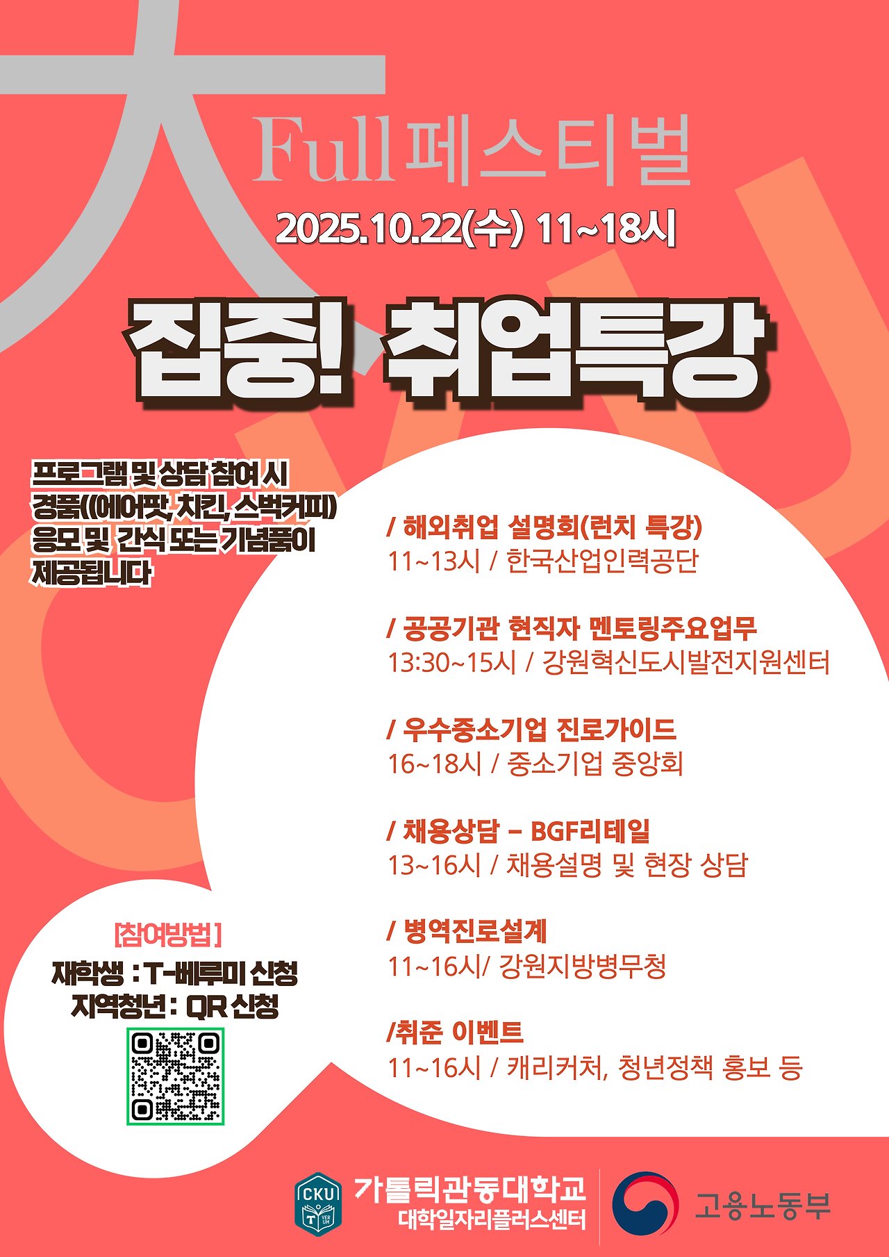 [대학일자리플러스센터] 2025년 大Full 페스티벌 2th 집중 취업특강 행사