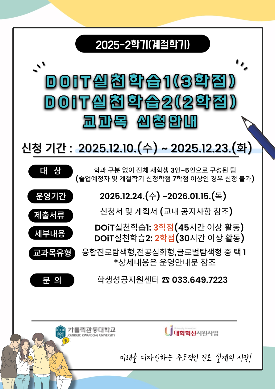 2025학년도 2학기(계절학기) ‘DOiT실천학습1,2’ 교과목 이수 안내 (신청기간 수정)