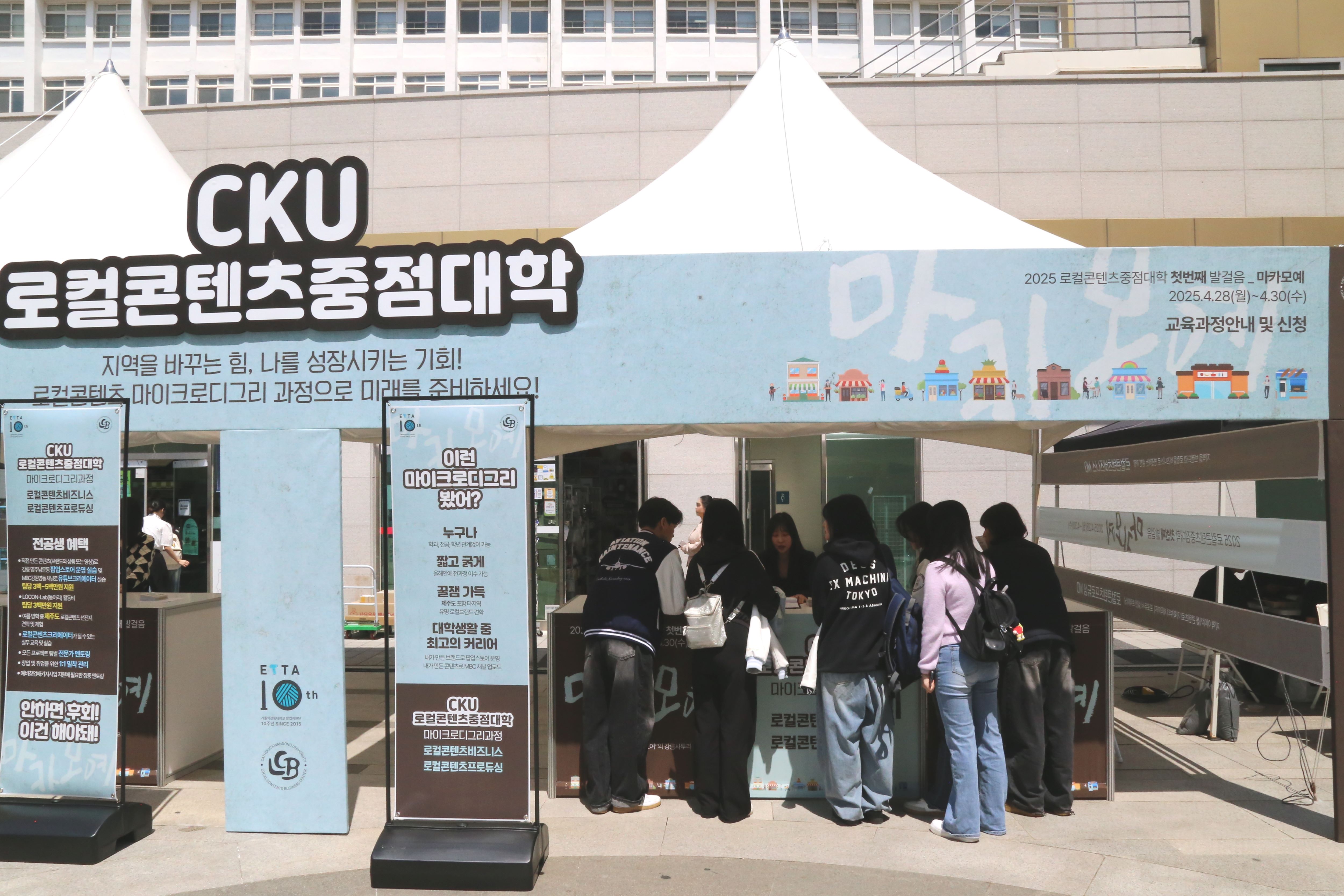 우리 대학은 4월 28일(월)부터 30일(수)까지 3일간 창조관 지하 야외에서 진행된 2025년 로컬콘텐츠 중점대학 비교과(특화) 프로그램 ‘마카모예’ 학생모집 행사를 성황리에 마무리했다.