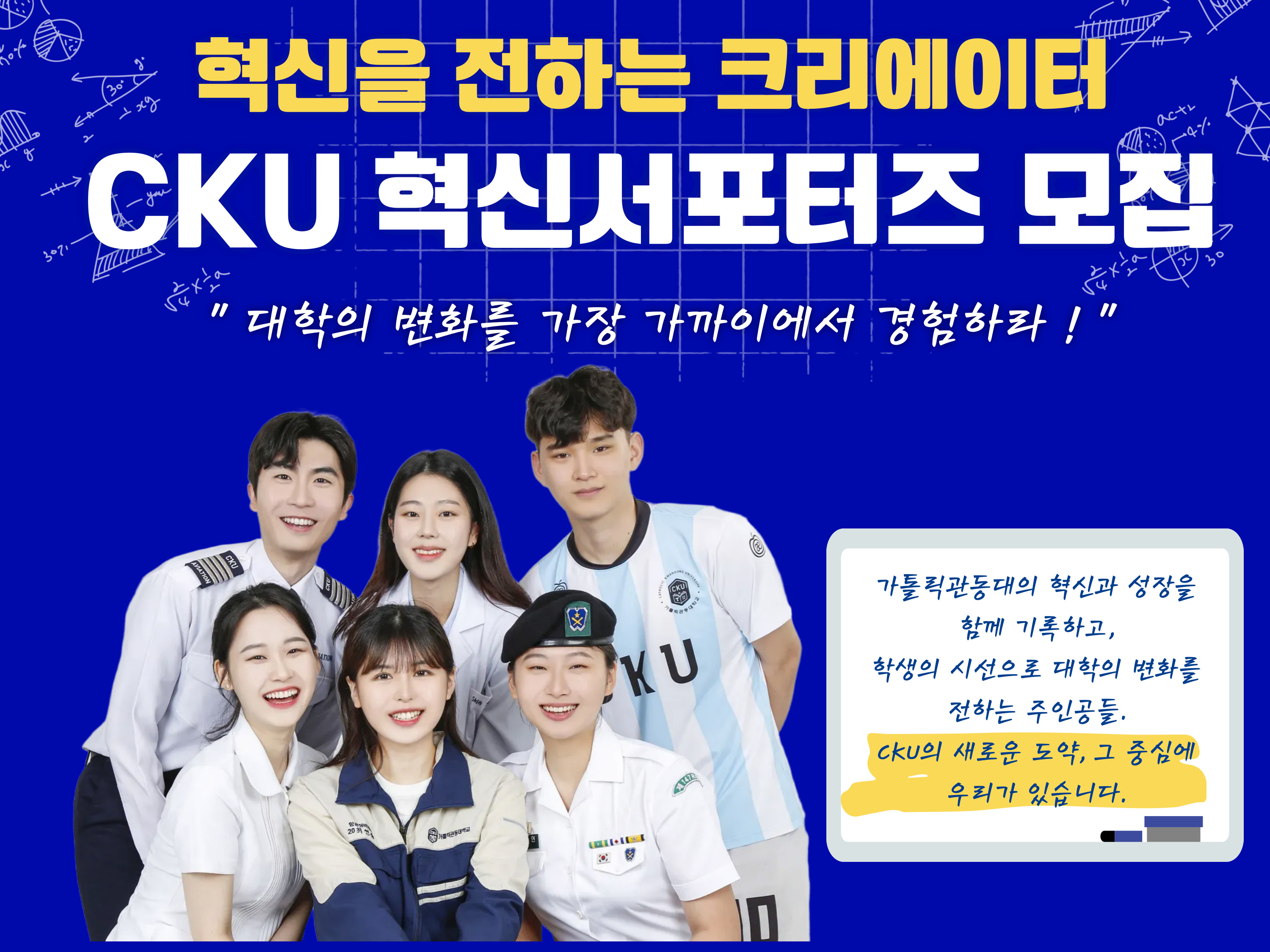 우리 대학이 대학혁신지원사업의 성과 확산과 학생 주도 혁신 문화 정착을 위해 ‘CKU 혁신서포터즈’를 새롭게 창단한다.