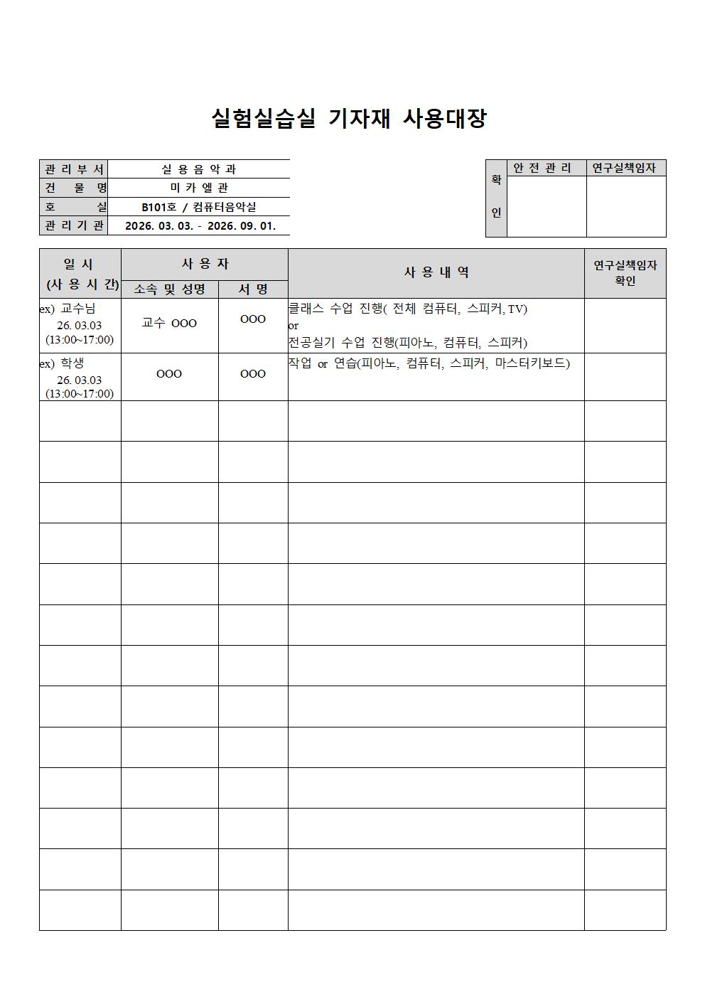 2026년도 1학기 연구실 기자재 이용대장 작성 안내