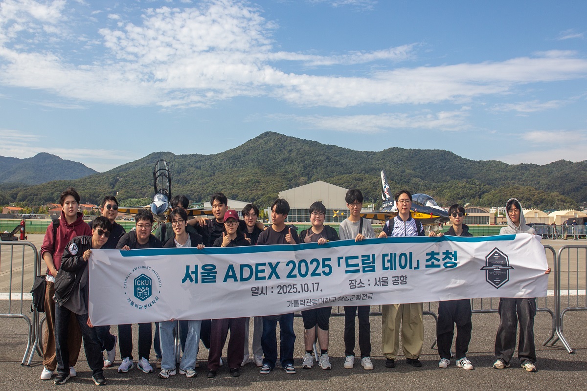 가톨릭관동대학교 항공운항전공 학생들이 대한민국을 대표하는 항공우주 및 방위산업 전시회 ADEX 2025 현장을 방문했습니다.