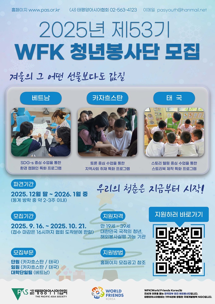 [해외봉사] 태평양아시아 주관, 제53기(동계) WFK PAS 청년봉사단 해외봉사 단원 모집